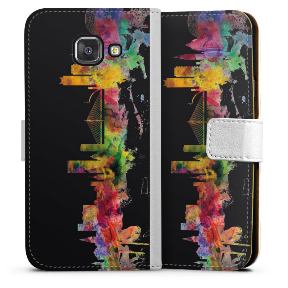 For our Sideflip Case we are using our advanced direct printing technology. The back and frontside are fully printabale, the inside of the phone bag is left unprinted. You can order the phone case without print, printed completely or also with a partial print.