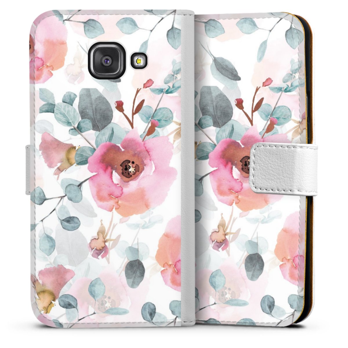 For our Sideflip Case we are using our advanced direct printing technology. The back and frontside are fully printabale, the inside of the phone bag is left unprinted. You can order the phone case without print, printed completely or also with a partial print.