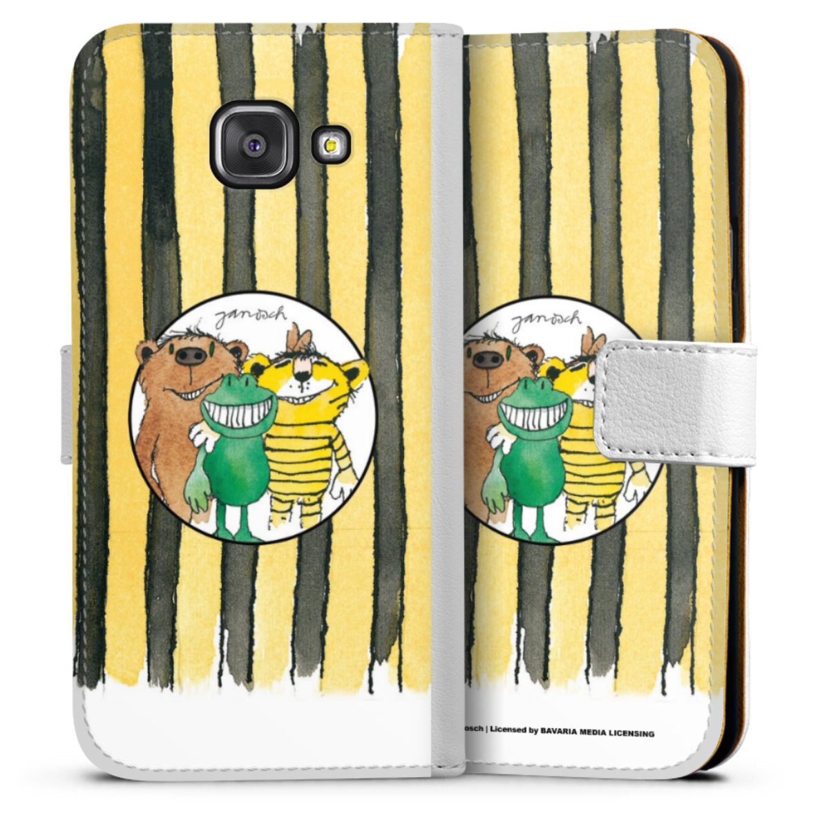 For our Sideflip Case we are using our advanced direct printing technology. The back and frontside are fully printabale, the inside of the phone bag is left unprinted. You can order the phone case without print, printed completely or also with a partial print.
