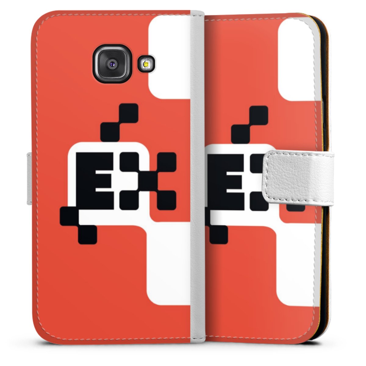 For our Sideflip Case we are using our advanced direct printing technology. The back and frontside are fully printabale, the inside of the phone bag is left unprinted. You can order the phone case without print, printed completely or also with a partial print.