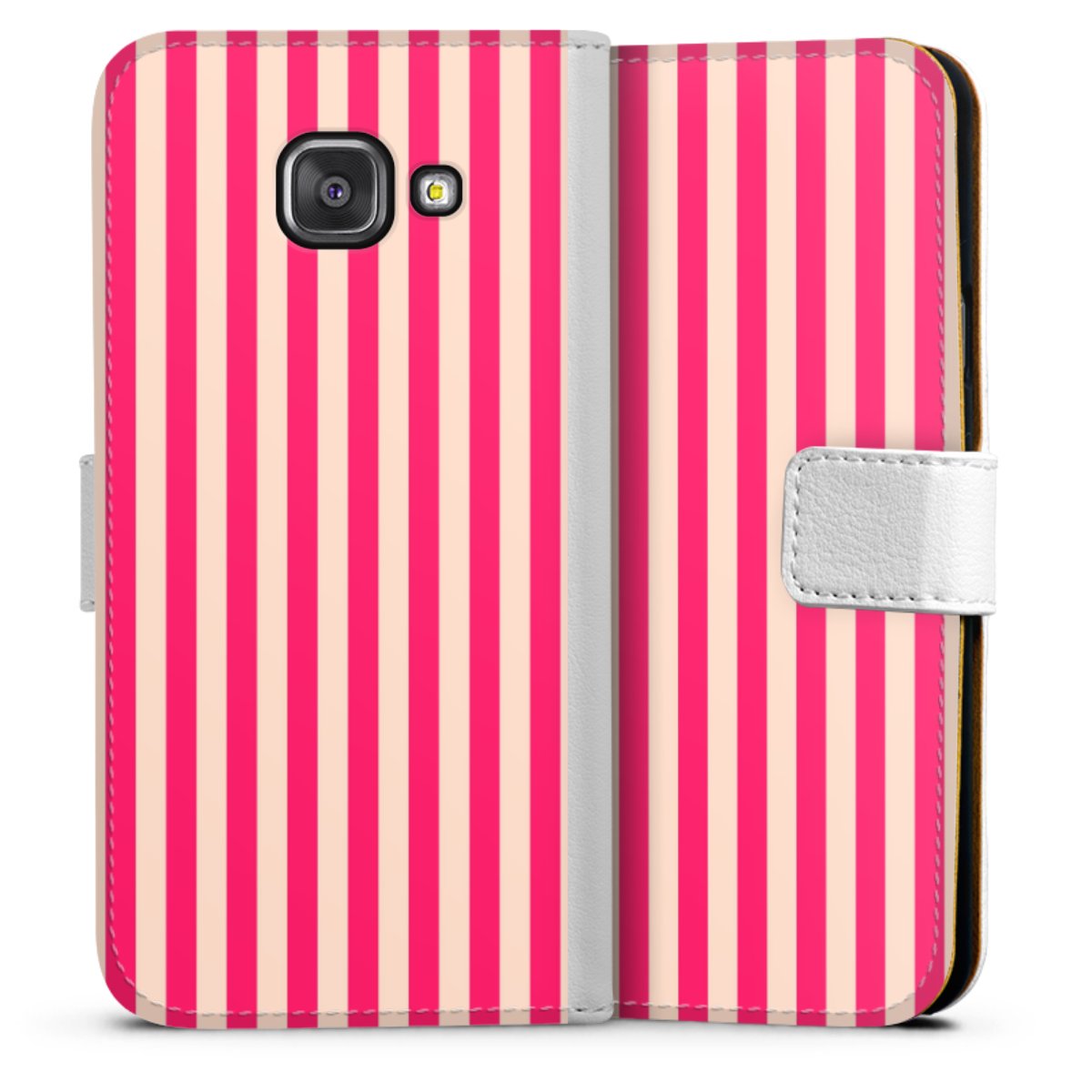 For our Sideflip Case we are using our advanced direct printing technology. The back and frontside are fully printabale, the inside of the phone bag is left unprinted. You can order the phone case without print, printed completely or also with a partial print.