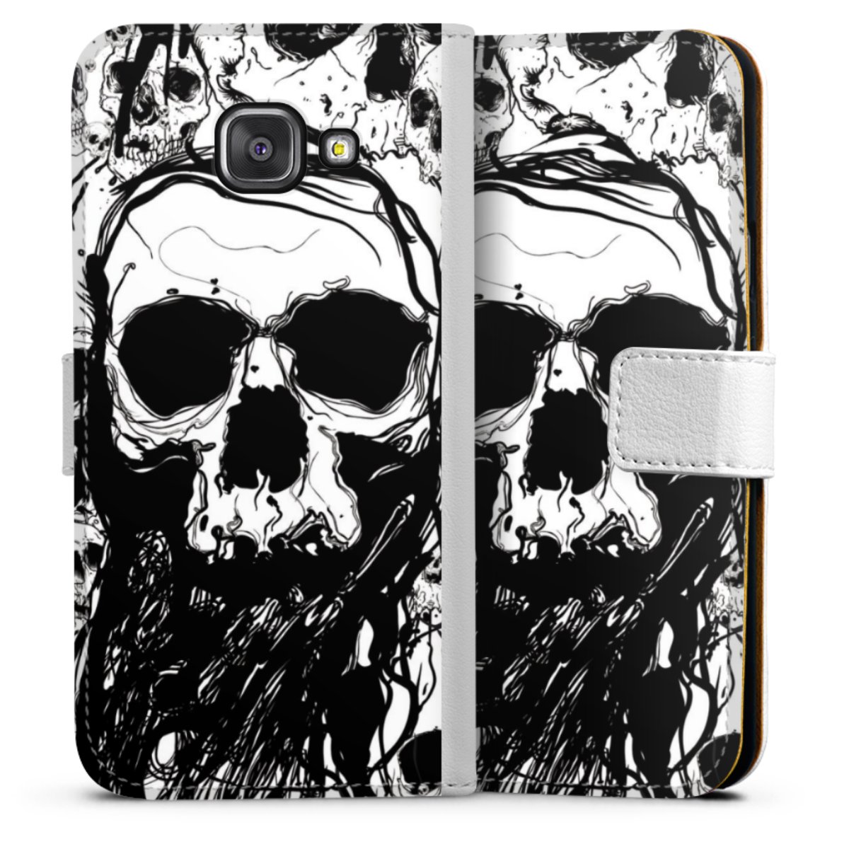 For our Sideflip Case we are using our advanced direct printing technology. The back and frontside are fully printabale, the inside of the phone bag is left unprinted. You can order the phone case without print, printed completely or also with a partial print.