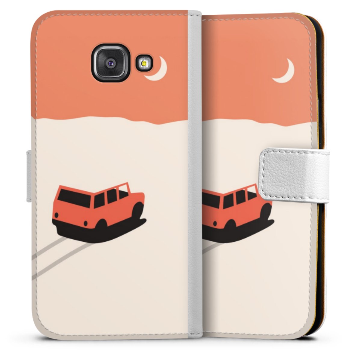 For our Sideflip Case we are using our advanced direct printing technology. The back and frontside are fully printabale, the inside of the phone bag is left unprinted. You can order the phone case without print, printed completely or also with a partial print.