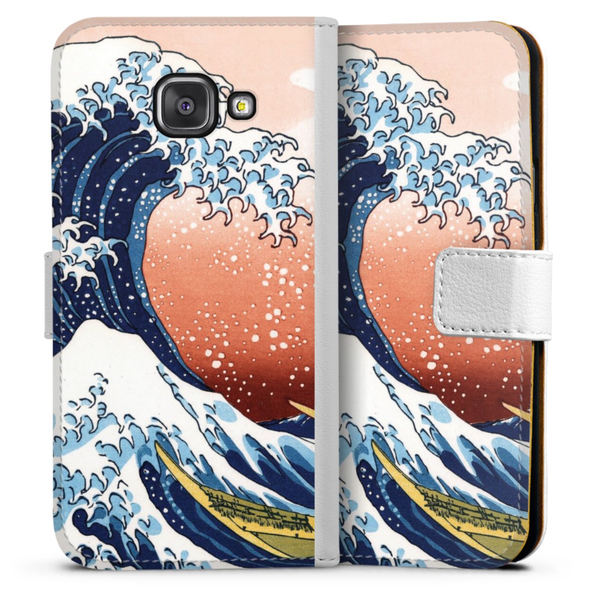 For our Sideflip Case we are using our advanced direct printing technology. The back and frontside are fully printabale, the inside of the phone bag is left unprinted. You can order the phone case without print, printed completely or also with a partial print.