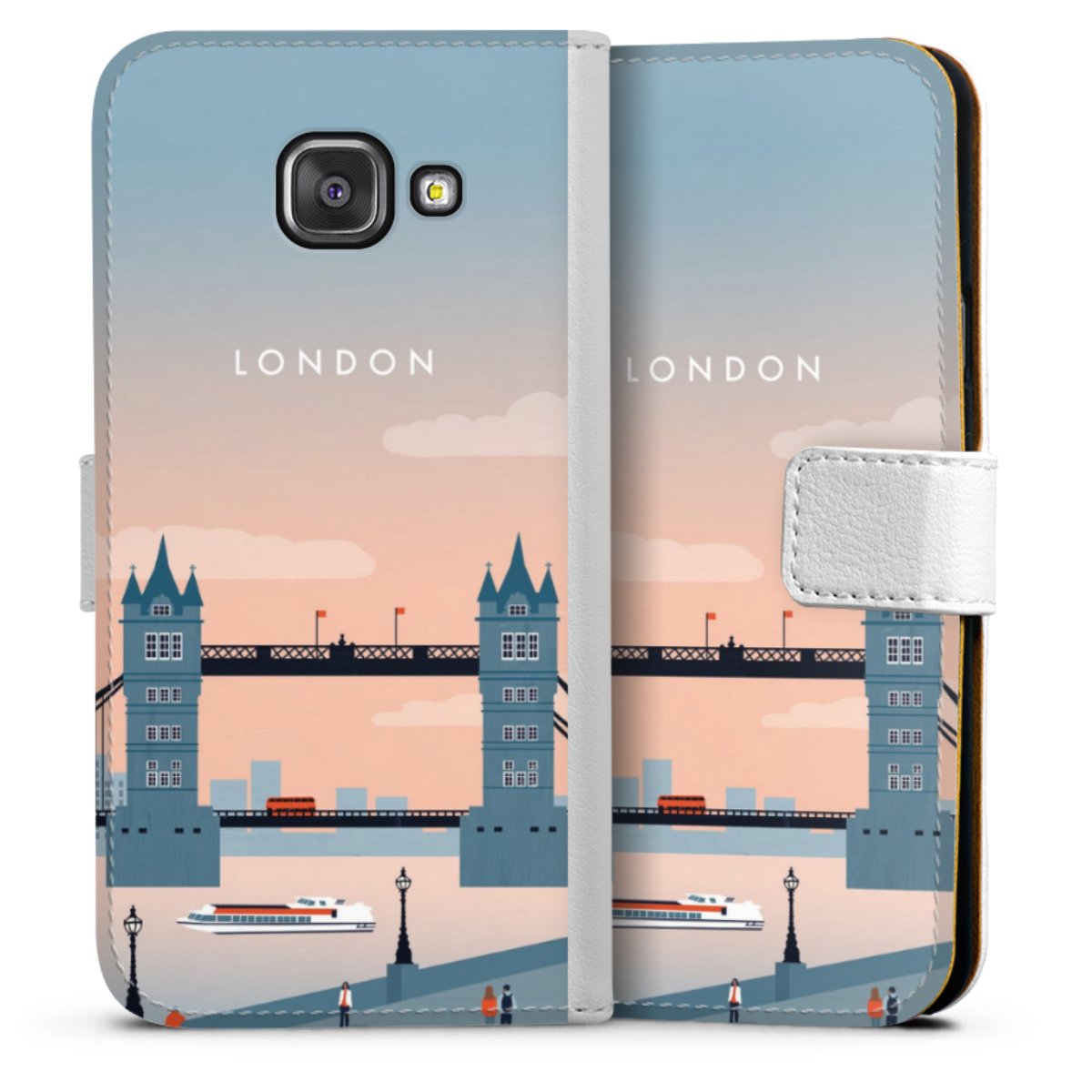 For our Sideflip Case we are using our advanced direct printing technology. The back and frontside are fully printabale, the inside of the phone bag is left unprinted. You can order the phone case without print, printed completely or also with a partial print.