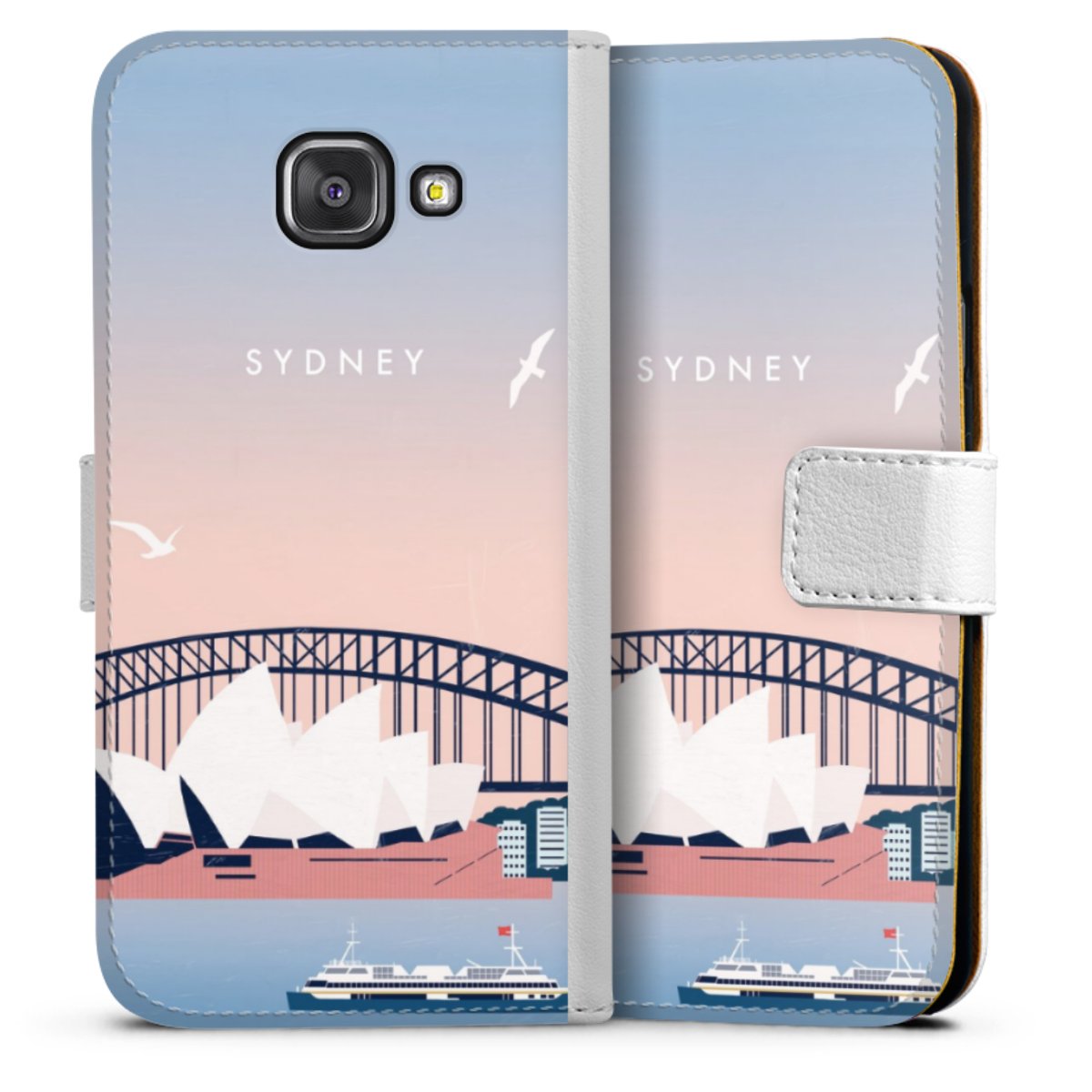 For our Sideflip Case we are using our advanced direct printing technology. The back and frontside are fully printabale, the inside of the phone bag is left unprinted. You can order the phone case without print, printed completely or also with a partial print.