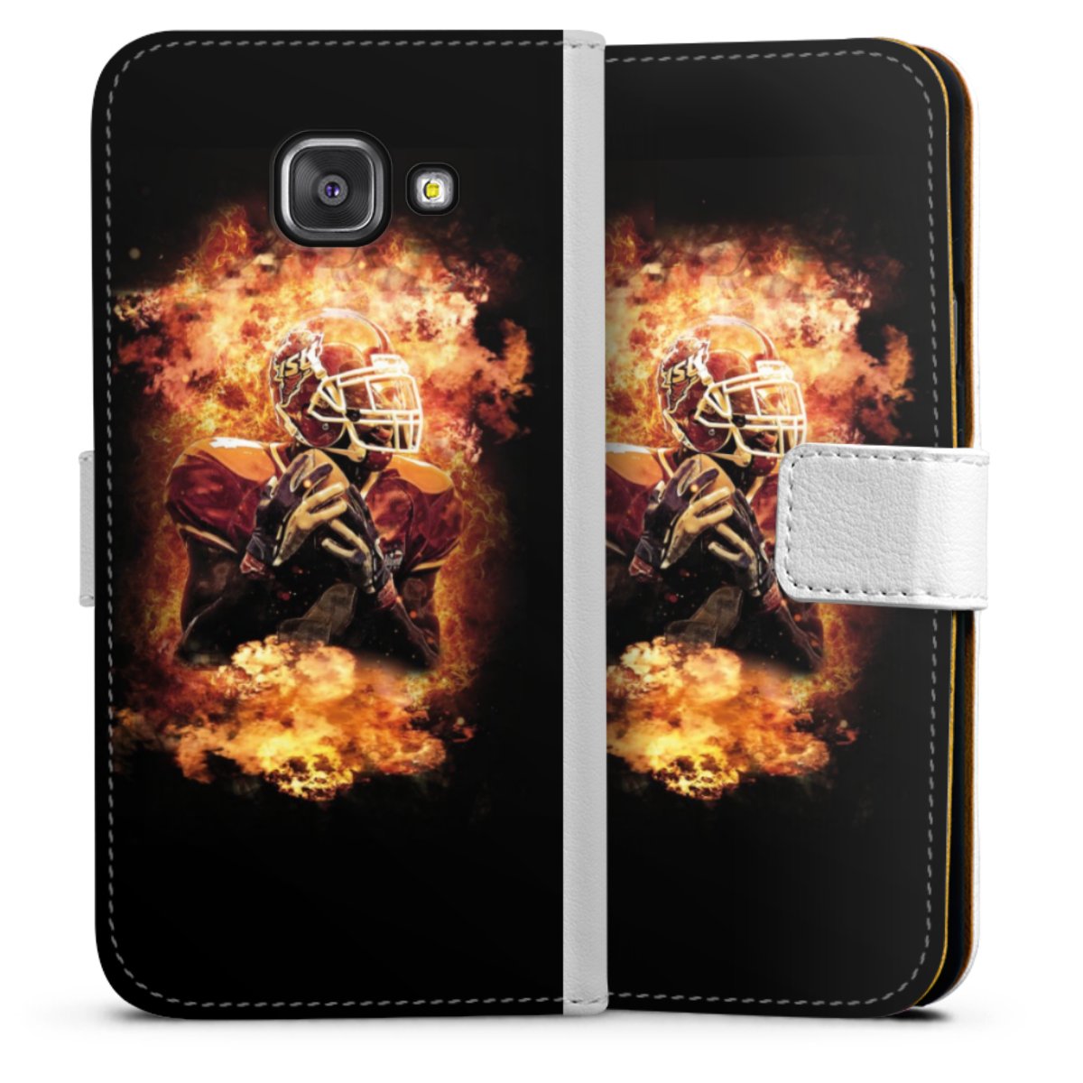 For our Sideflip Case we are using our advanced direct printing technology. The back and frontside are fully printabale, the inside of the phone bag is left unprinted. You can order the phone case without print, printed completely or also with a partial print.