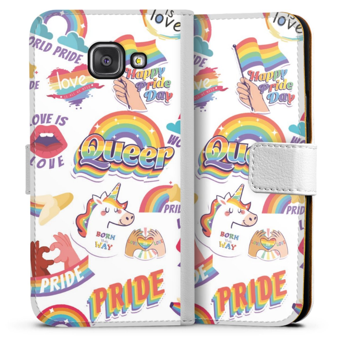 For our Sideflip Case we are using our advanced direct printing technology. The back and frontside are fully printabale, the inside of the phone bag is left unprinted. You can order the phone case without print, printed completely or also with a partial print.
