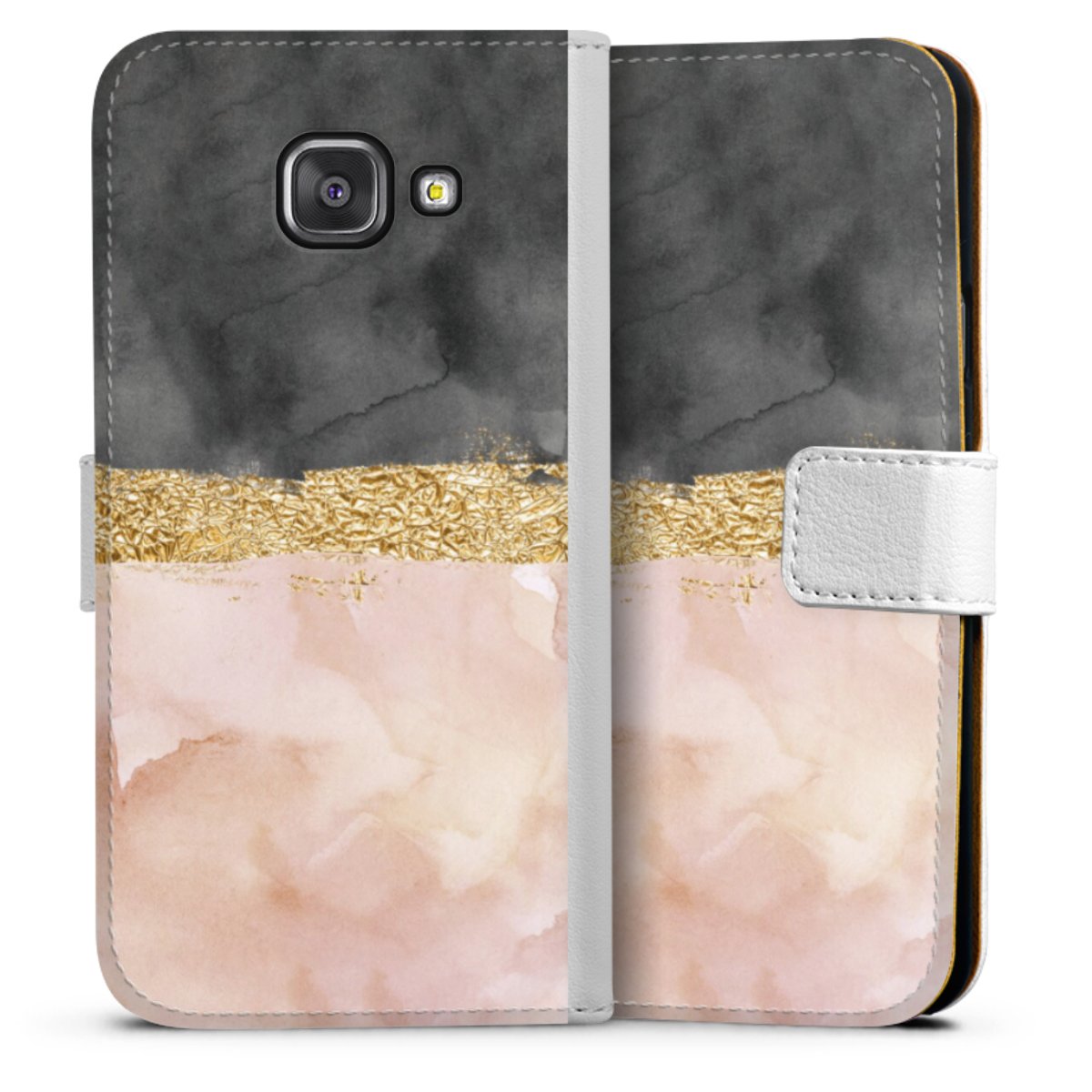 For our Sideflip Case we are using our advanced direct printing technology. The back and frontside are fully printabale, the inside of the phone bag is left unprinted. You can order the phone case without print, printed completely or also with a partial print.
