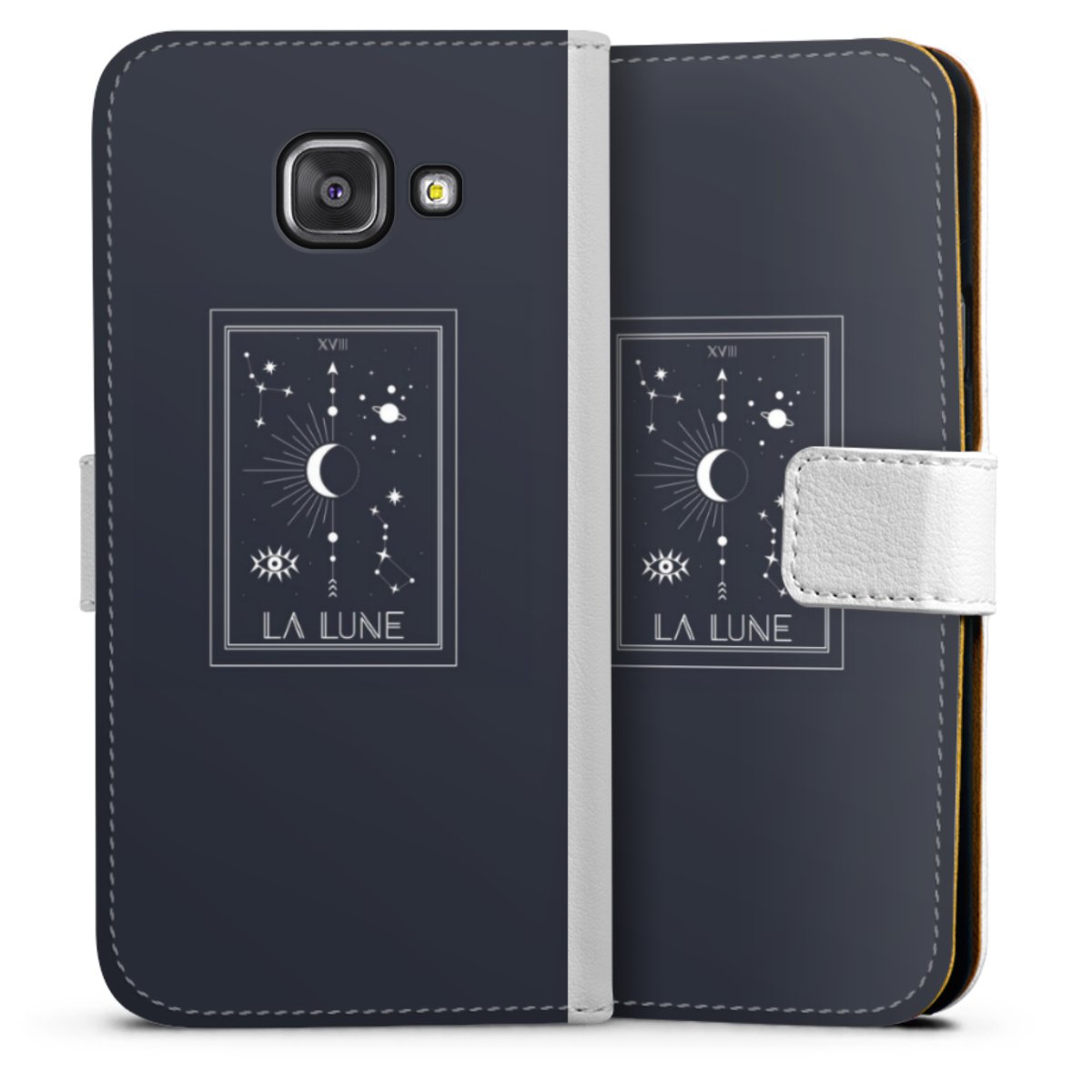 For our Sideflip Case we are using our advanced direct printing technology. The back and frontside are fully printabale, the inside of the phone bag is left unprinted. You can order the phone case without print, printed completely or also with a partial print.