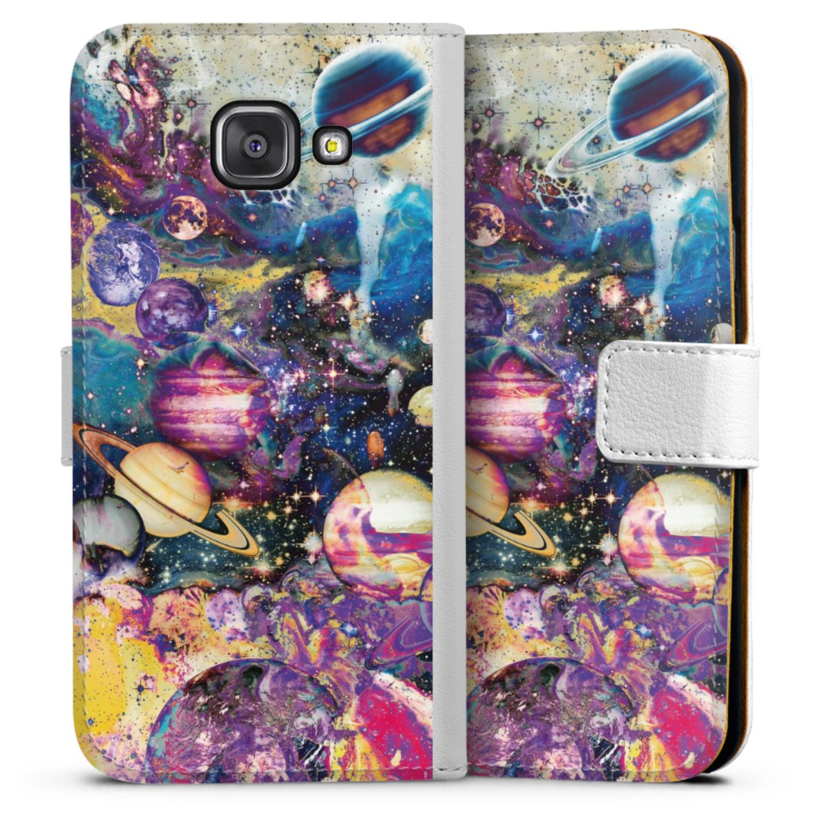 For our Sideflip Case we are using our advanced direct printing technology. The back and frontside are fully printabale, the inside of the phone bag is left unprinted. You can order the phone case without print, printed completely or also with a partial print.