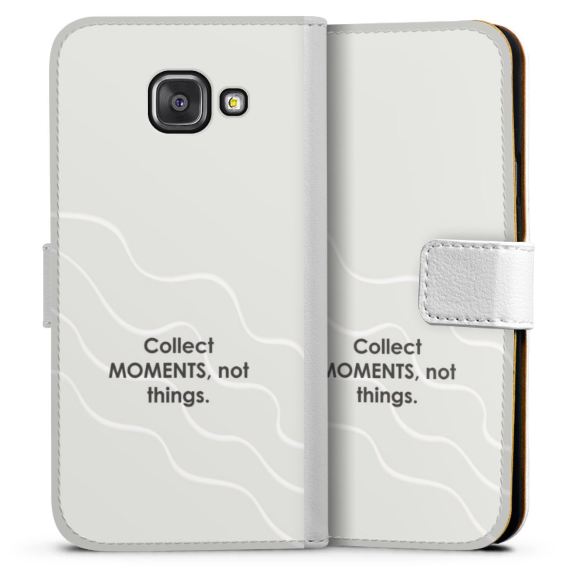 For our Sideflip Case we are using our advanced direct printing technology. The back and frontside are fully printabale, the inside of the phone bag is left unprinted. You can order the phone case without print, printed completely or also with a partial print.
