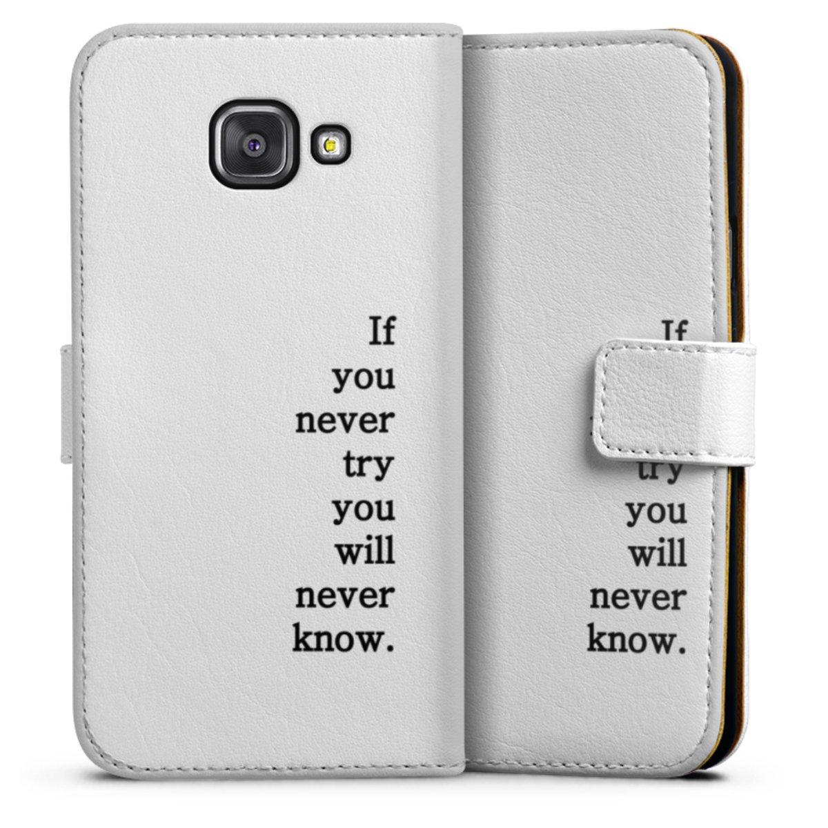 For our Sideflip Case we are using our advanced direct printing technology. The back and frontside are fully printabale, the inside of the phone bag is left unprinted. You can order the phone case without print, printed completely or also with a partial print.