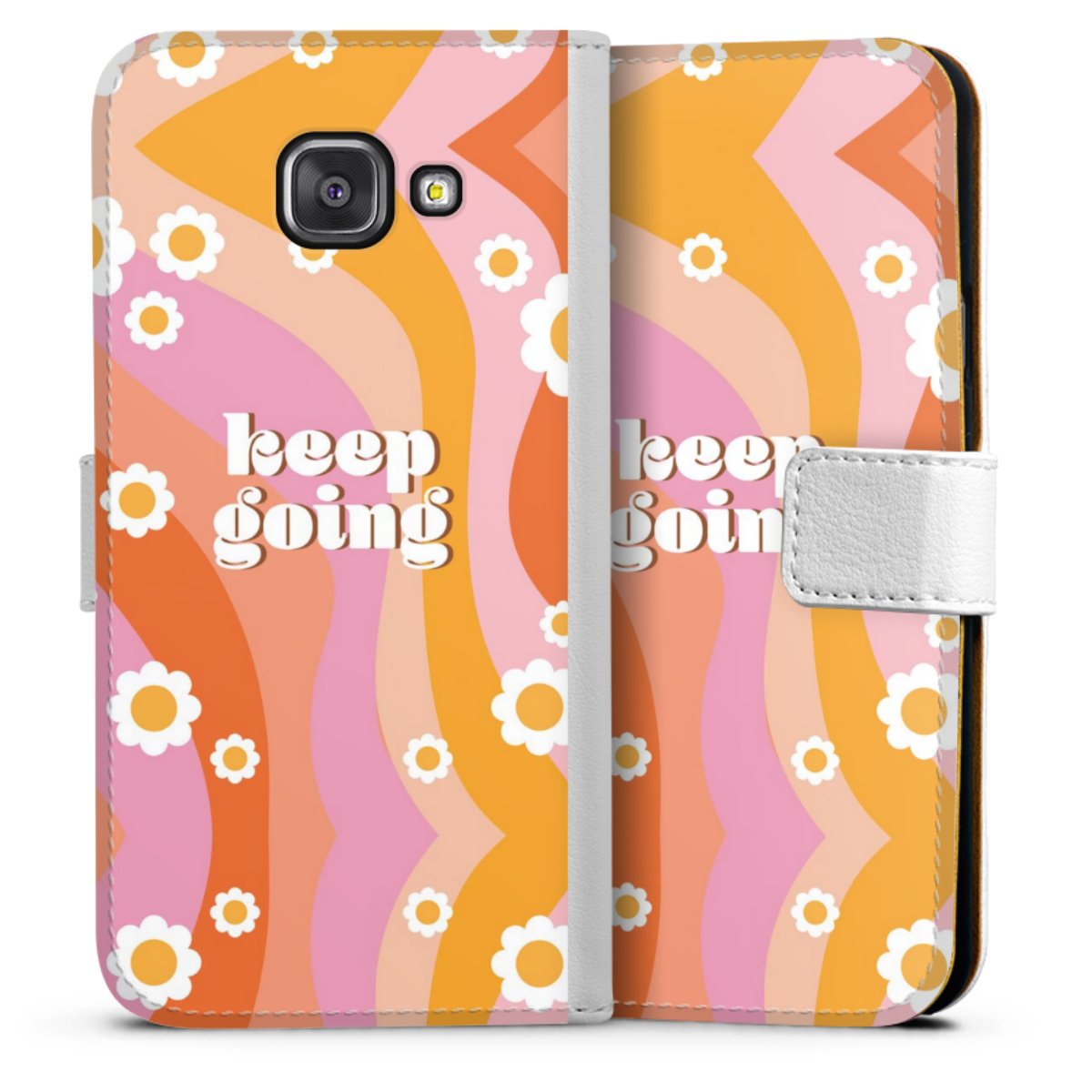 For our Sideflip Case we are using our advanced direct printing technology. The back and frontside are fully printabale, the inside of the phone bag is left unprinted. You can order the phone case without print, printed completely or also with a partial print.