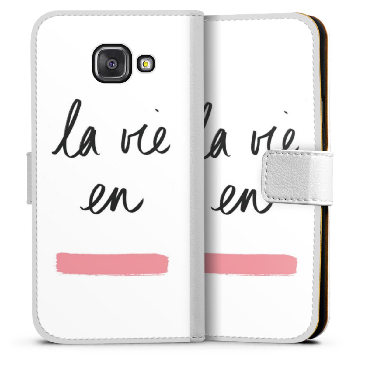 For our Sideflip Case we are using our advanced direct printing technology. The back and frontside are fully printabale, the inside of the phone bag is left unprinted. You can order the phone case without print, printed completely or also with a partial print.