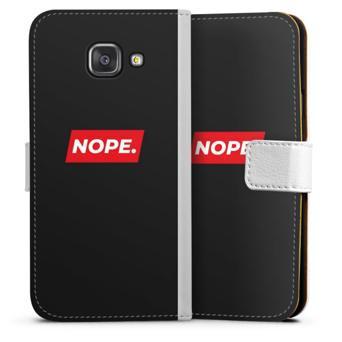 For our Sideflip Case we are using our advanced direct printing technology. The back and frontside are fully printabale, the inside of the phone bag is left unprinted. You can order the phone case without print, printed completely or also with a partial print.