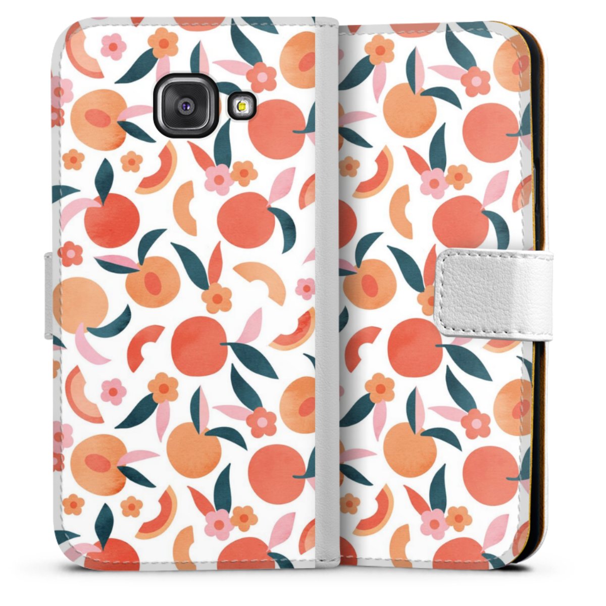 For our Sideflip Case we are using our advanced direct printing technology. The back and frontside are fully printabale, the inside of the phone bag is left unprinted. You can order the phone case without print, printed completely or also with a partial print.