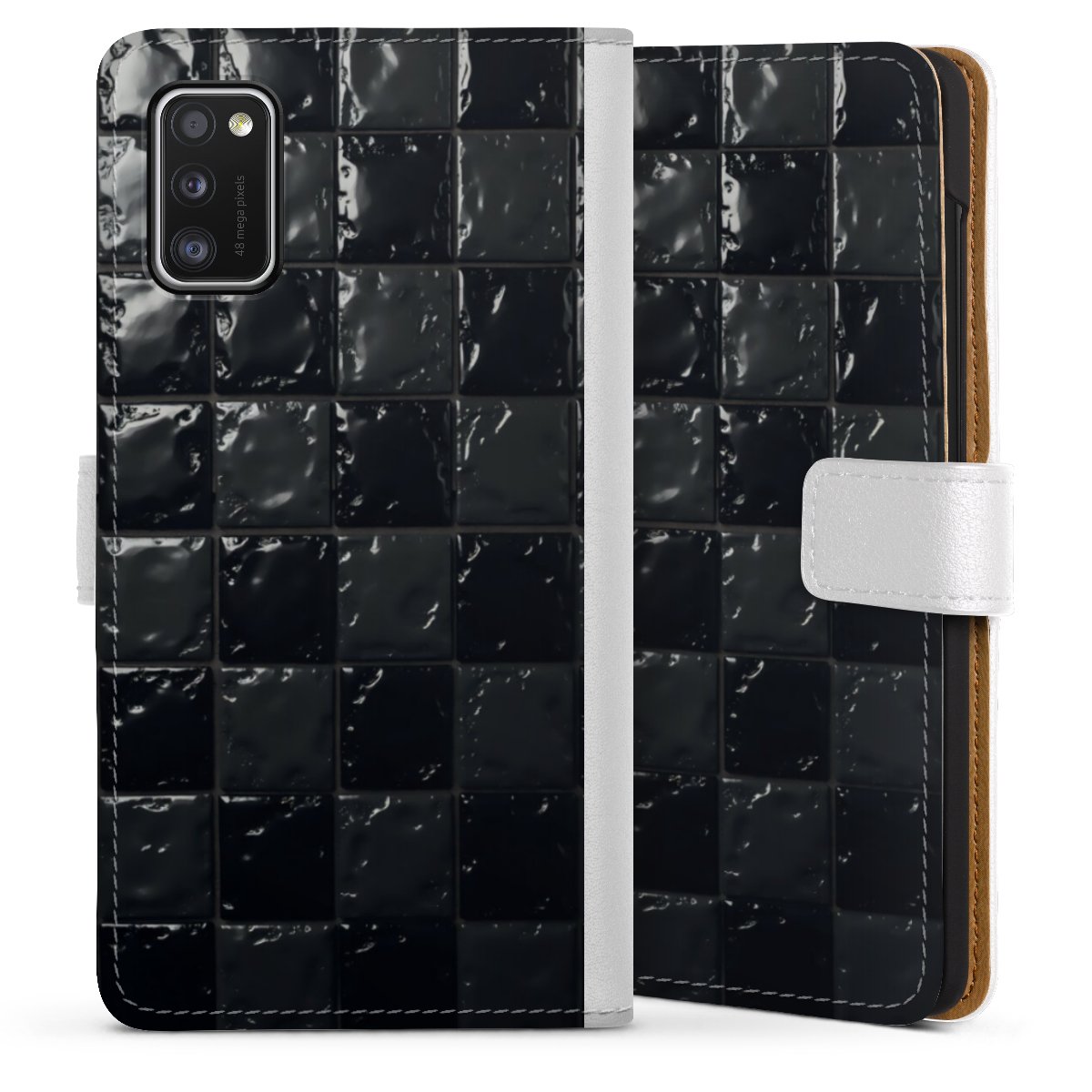 For our Sideflip Case we are using our advanced direct printing technology. The back and frontside are fully printabale, the inside of the phone bag is left unprinted. You can order the phone case without print, printed completely or also with a partial print.