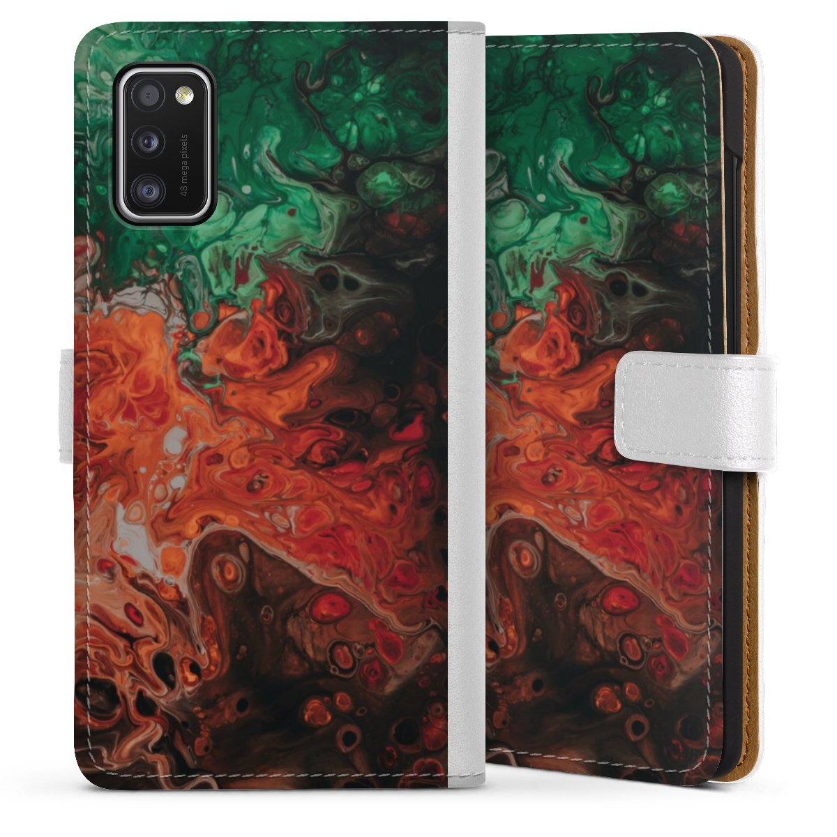 For our Sideflip Case we are using our advanced direct printing technology. The back and frontside are fully printabale, the inside of the phone bag is left unprinted. You can order the phone case without print, printed completely or also with a partial print.
