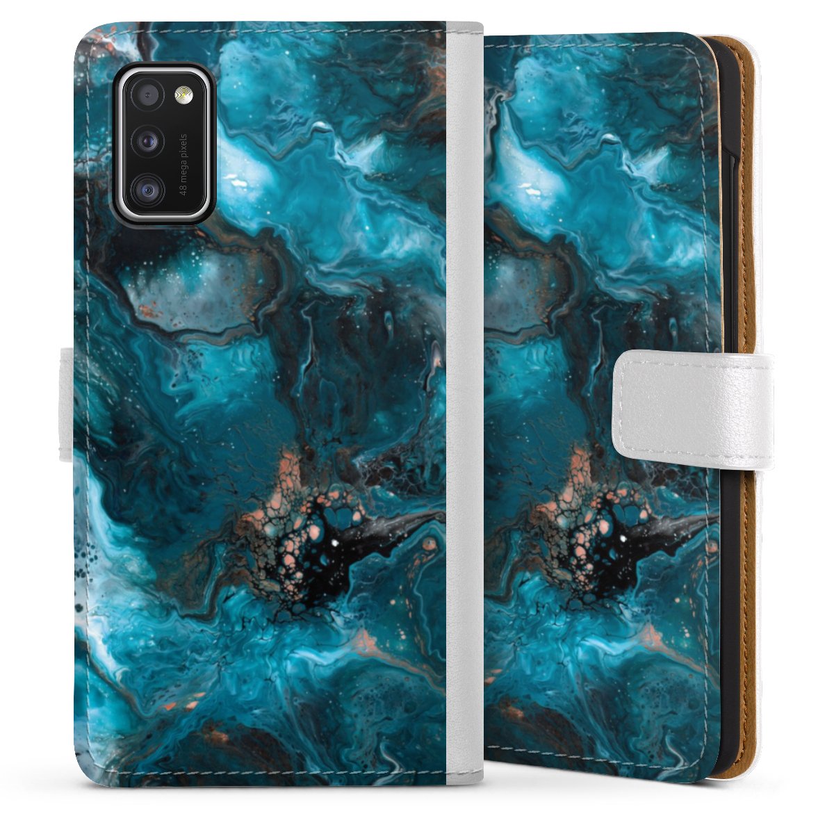 For our Sideflip Case we are using our advanced direct printing technology. The back and frontside are fully printabale, the inside of the phone bag is left unprinted. You can order the phone case without print, printed completely or also with a partial print.