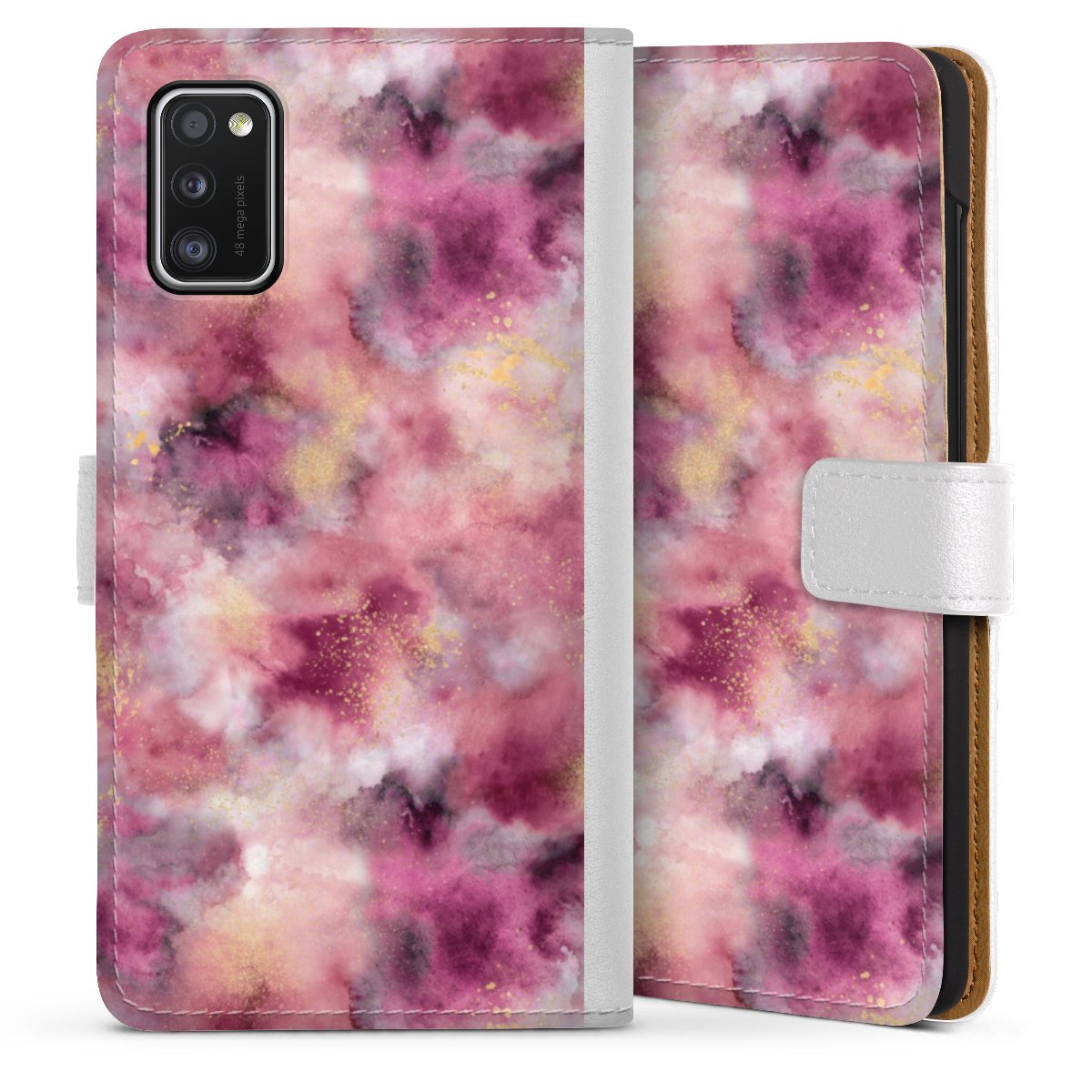 For our Sideflip Case we are using our advanced direct printing technology. The back and frontside are fully printabale, the inside of the phone bag is left unprinted. You can order the phone case without print, printed completely or also with a partial print.