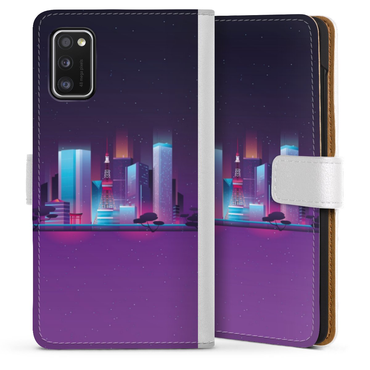 For our Sideflip Case we are using our advanced direct printing technology. The back and frontside are fully printabale, the inside of the phone bag is left unprinted. You can order the phone case without print, printed completely or also with a partial print.