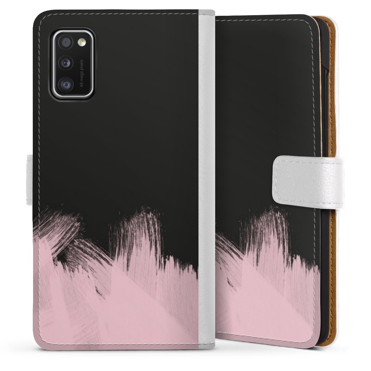 For our Sideflip Case we are using our advanced direct printing technology. The back and frontside are fully printabale, the inside of the phone bag is left unprinted. You can order the phone case without print, printed completely or also with a partial print.