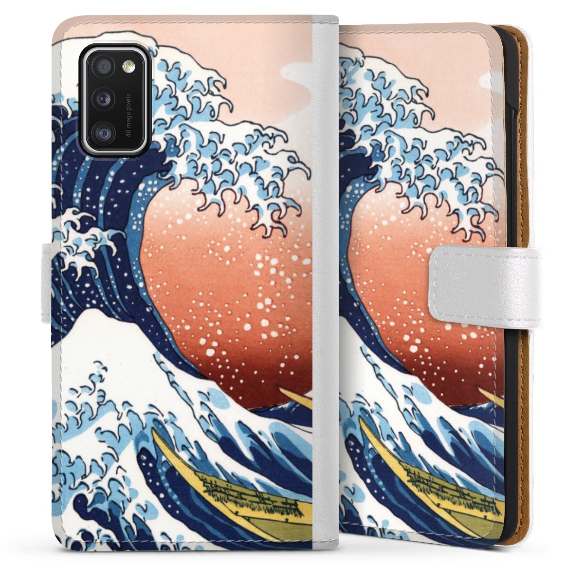 For our Sideflip Case we are using our advanced direct printing technology. The back and frontside are fully printabale, the inside of the phone bag is left unprinted. You can order the phone case without print, printed completely or also with a partial print.