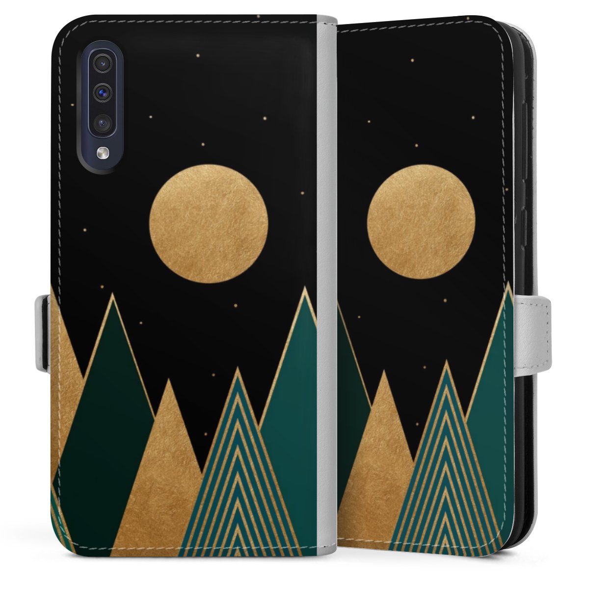 For our Sideflip Case we are using our advanced direct printing technology. The back and frontside are fully printabale, the inside of the phone bag is left unprinted. You can order the phone case without print, printed completely or also with a partial print.