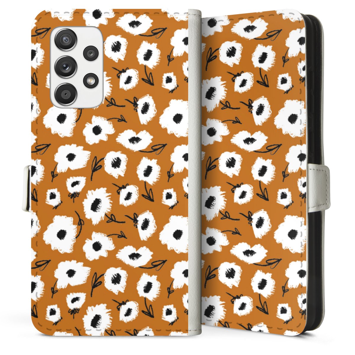 For our Sideflip Case we are using our advanced direct printing technology. The back and frontside are fully printabale, the inside of the phone bag is left unprinted. You can order the phone case without print, printed completely or also with a partial print.