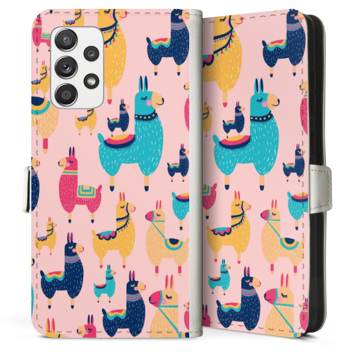 For our Sideflip Case we are using our advanced direct printing technology. The back and frontside are fully printabale, the inside of the phone bag is left unprinted. You can order the phone case without print, printed completely or also with a partial print.