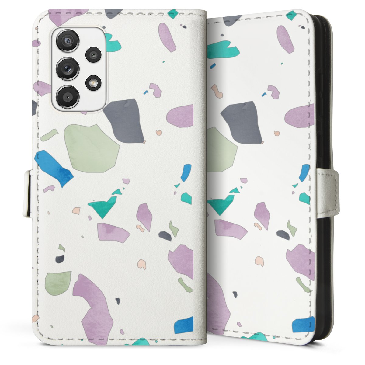For our Sideflip Case we are using our advanced direct printing technology. The back and frontside are fully printabale, the inside of the phone bag is left unprinted. You can order the phone case without print, printed completely or also with a partial print.