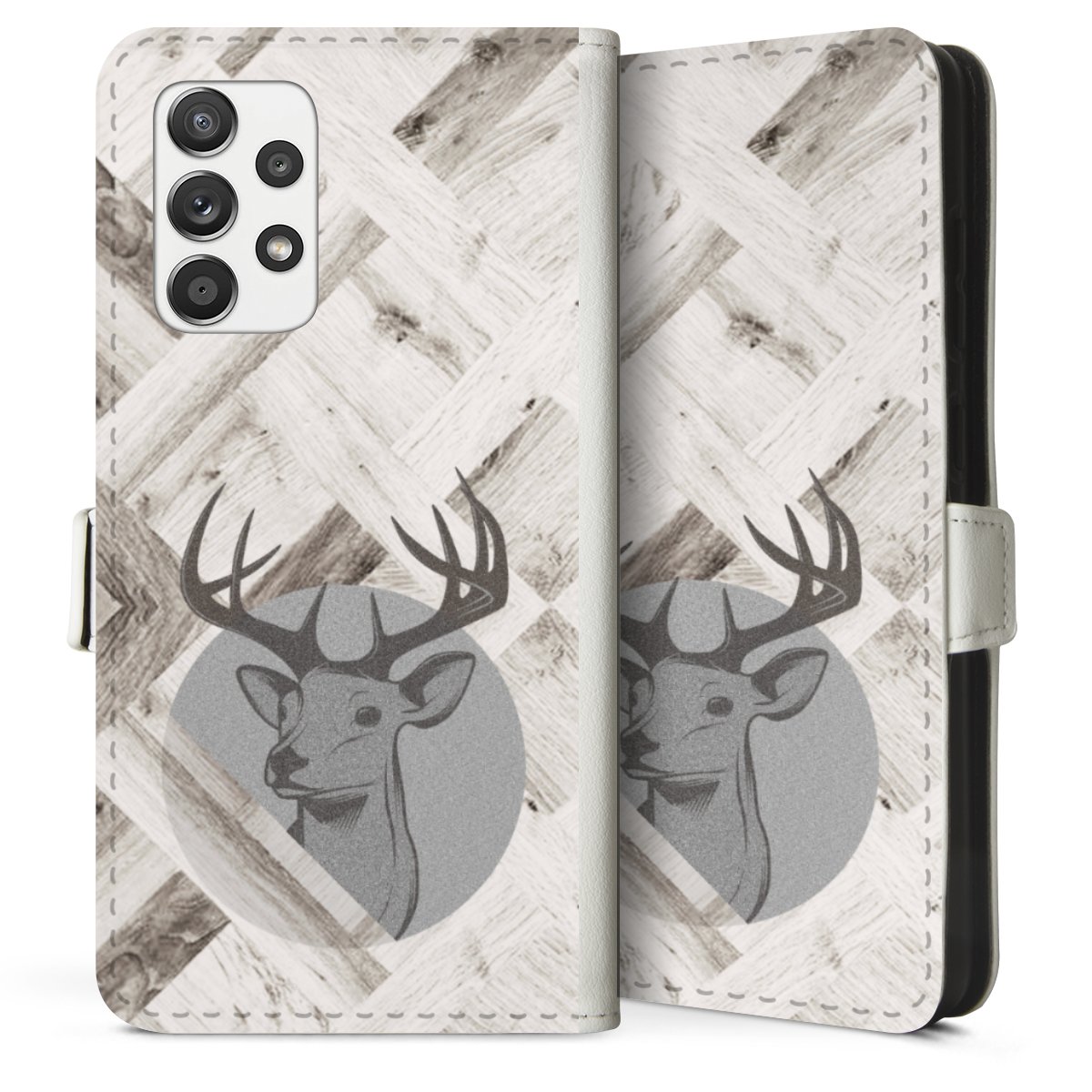 For our Sideflip Case we are using our advanced direct printing technology. The back and frontside are fully printabale, the inside of the phone bag is left unprinted. You can order the phone case without print, printed completely or also with a partial print.