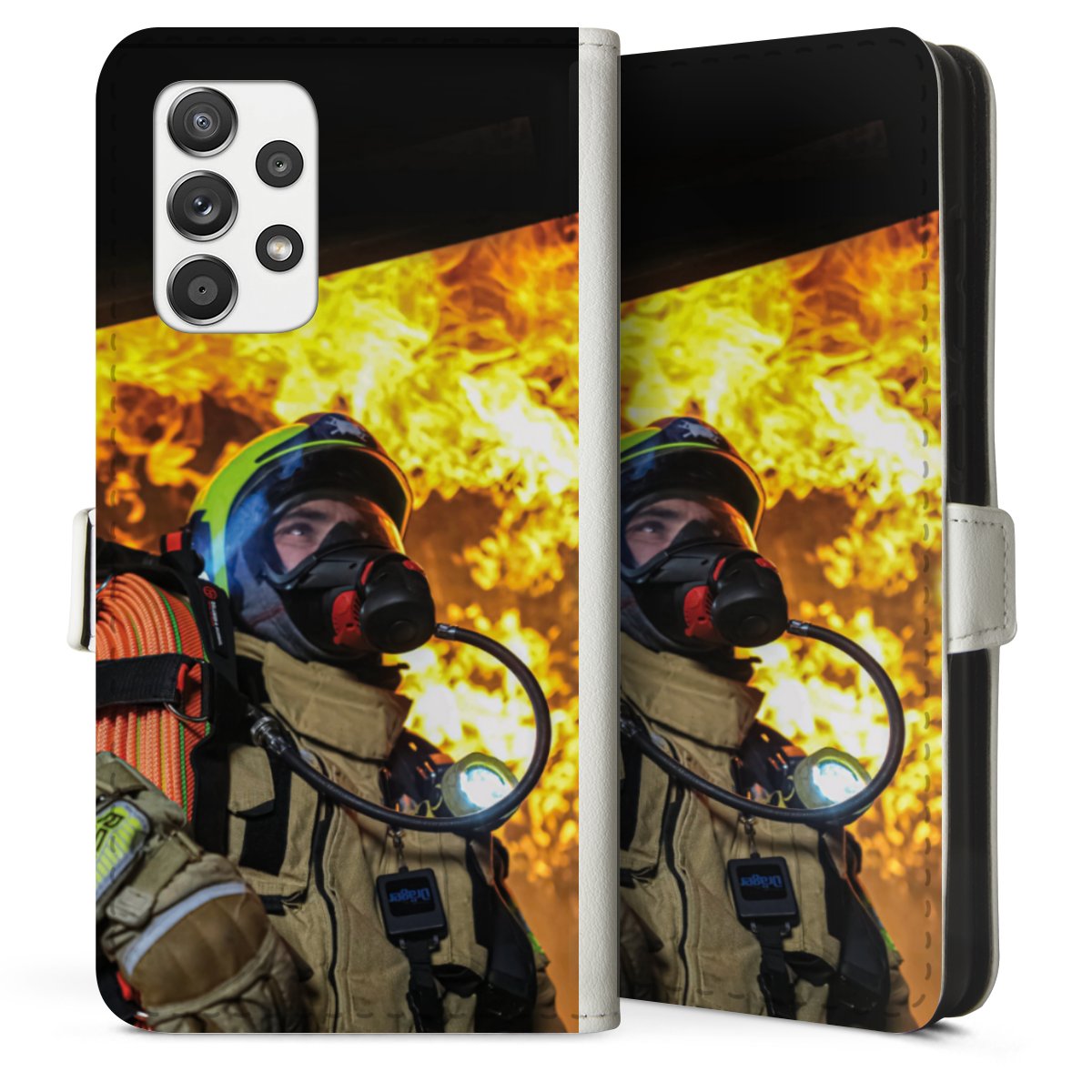 For our Sideflip Case we are using our advanced direct printing technology. The back and frontside are fully printabale, the inside of the phone bag is left unprinted. You can order the phone case without print, printed completely or also with a partial print.