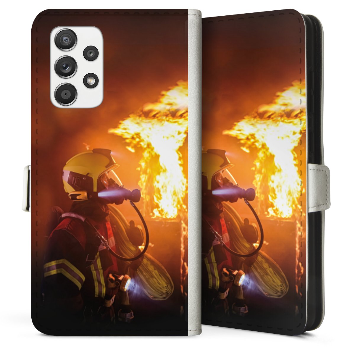 For our Sideflip Case we are using our advanced direct printing technology. The back and frontside are fully printabale, the inside of the phone bag is left unprinted. You can order the phone case without print, printed completely or also with a partial print.