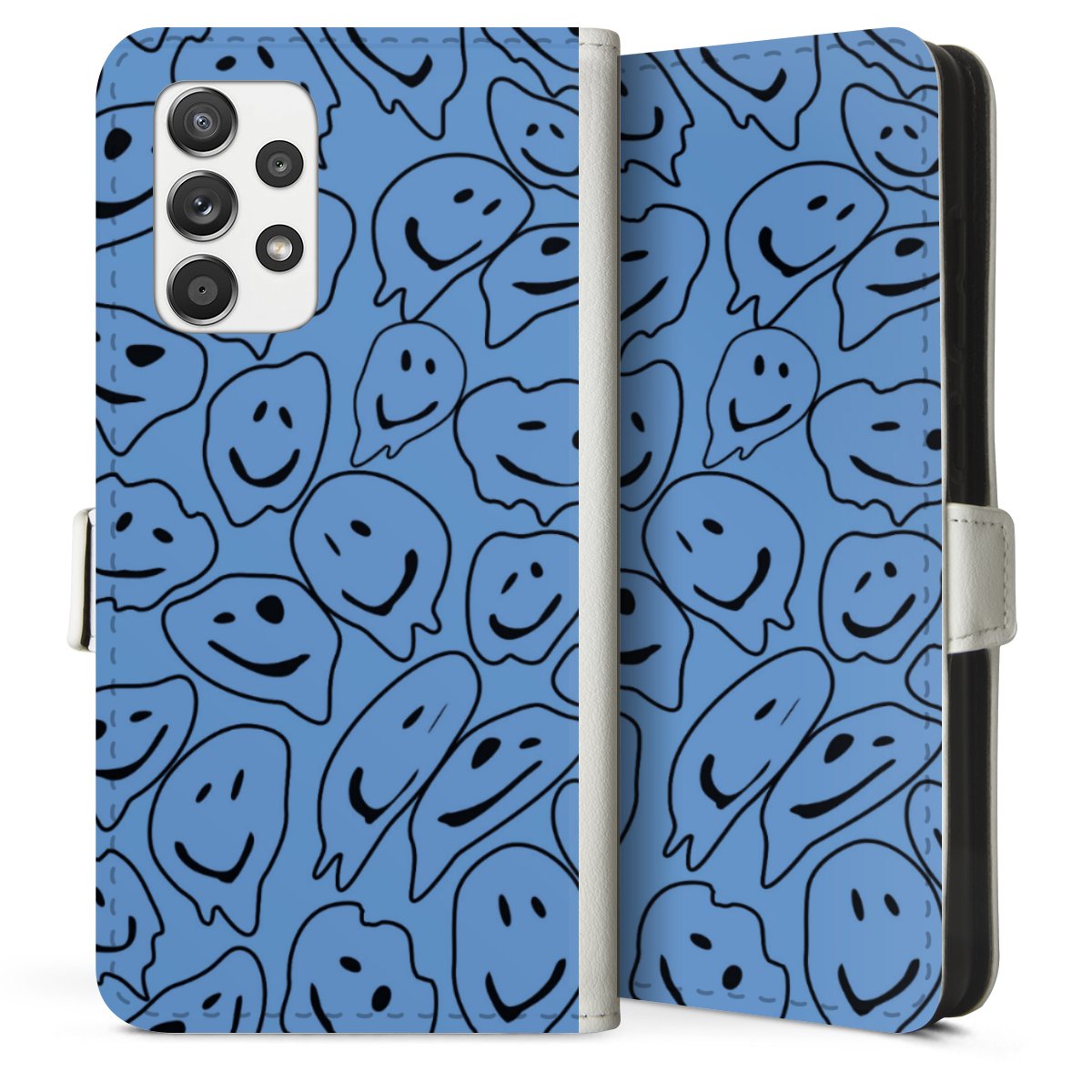 For our Sideflip Case we are using our advanced direct printing technology. The back and frontside are fully printabale, the inside of the phone bag is left unprinted. You can order the phone case without print, printed completely or also with a partial print.