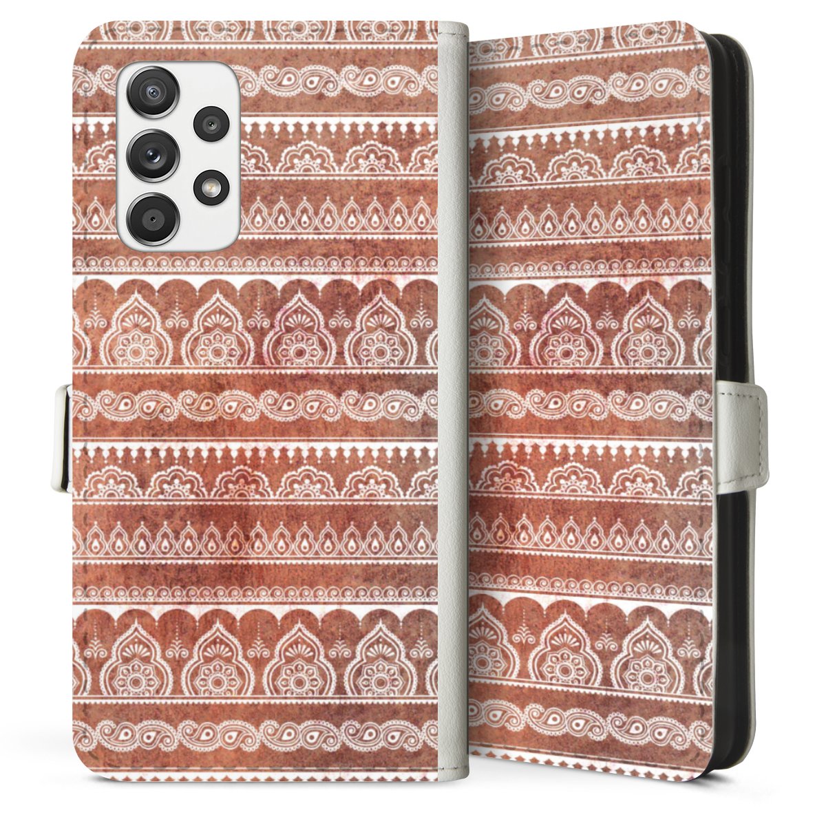 For our Sideflip Case we are using our advanced direct printing technology. The back and frontside are fully printabale, the inside of the phone bag is left unprinted. You can order the phone case without print, printed completely or also with a partial print.