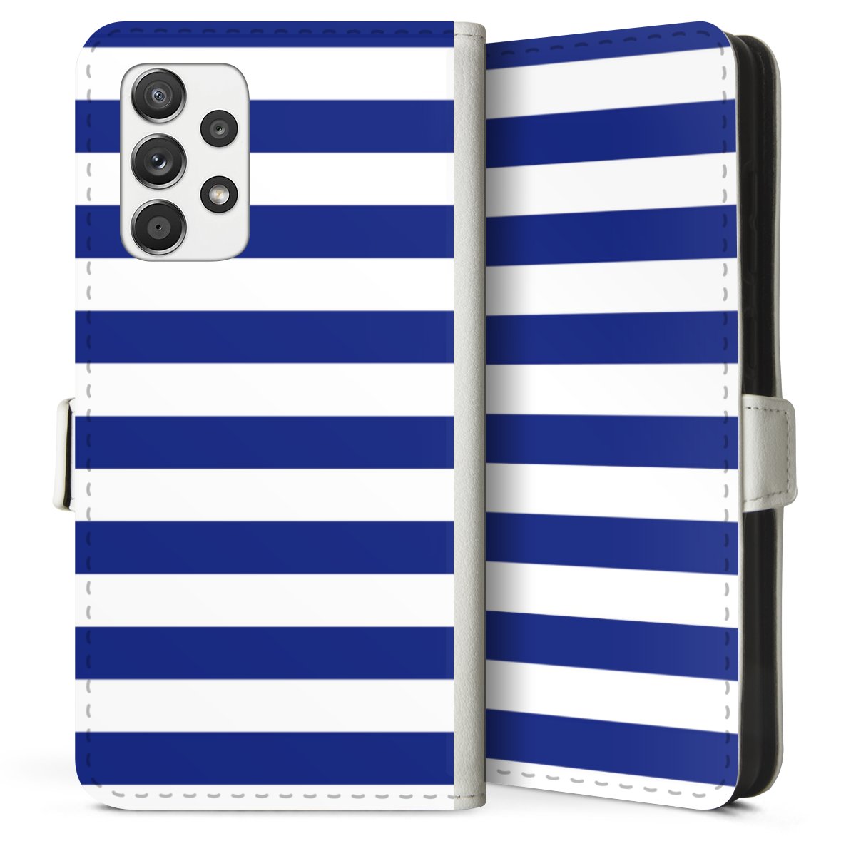 For our Sideflip Case we are using our advanced direct printing technology. The back and frontside are fully printabale, the inside of the phone bag is left unprinted. You can order the phone case without print, printed completely or also with a partial print.