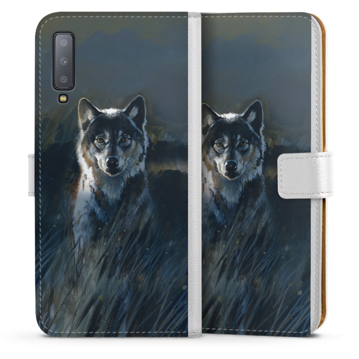 For our Sideflip Case we are using our advanced direct printing technology. The back and frontside are fully printabale, the inside of the phone bag is left unprinted. You can order the phone case without print, printed completely or also with a partial print.