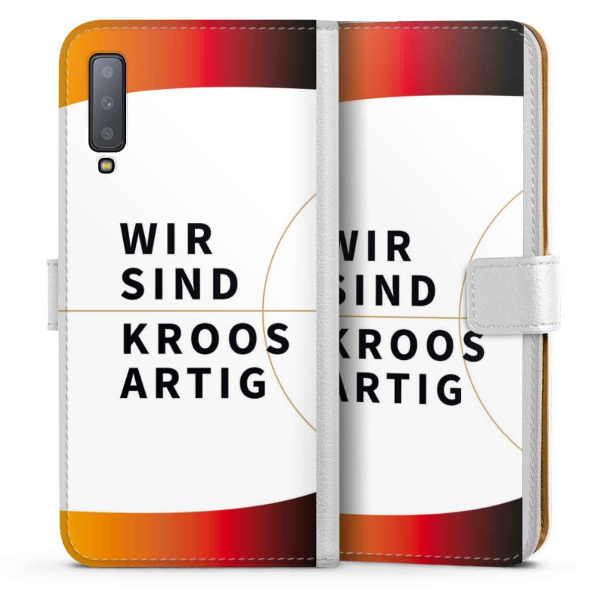 For our Sideflip Case we are using our advanced direct printing technology. The back and frontside are fully printabale, the inside of the phone bag is left unprinted. You can order the phone case without print, printed completely or also with a partial print.