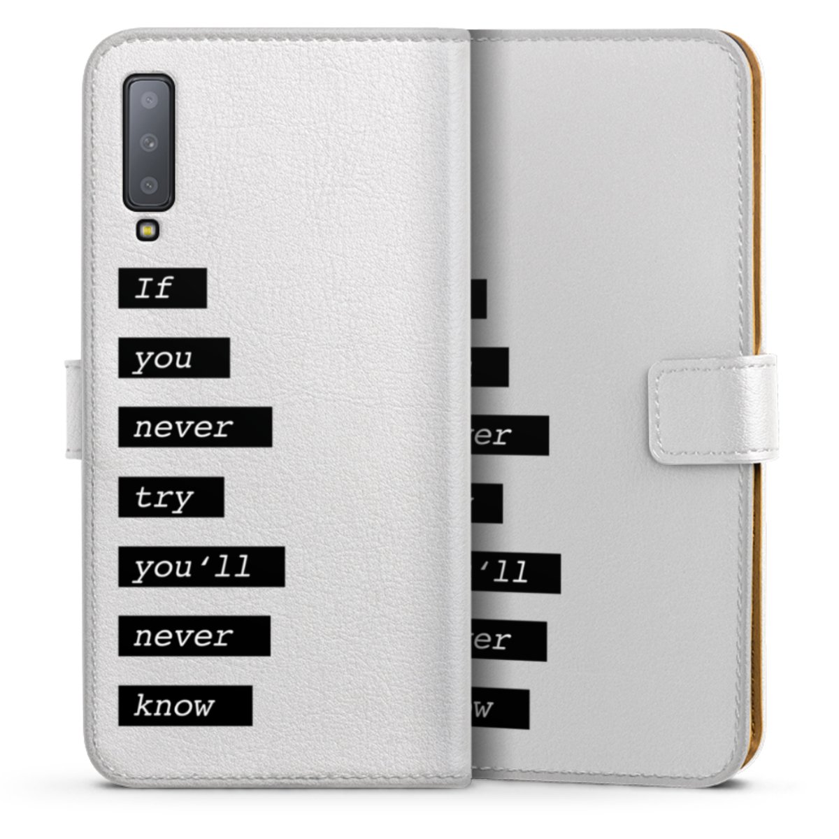 For our Sideflip Case we are using our advanced direct printing technology. The back and frontside are fully printabale, the inside of the phone bag is left unprinted. You can order the phone case without print, printed completely or also with a partial print.