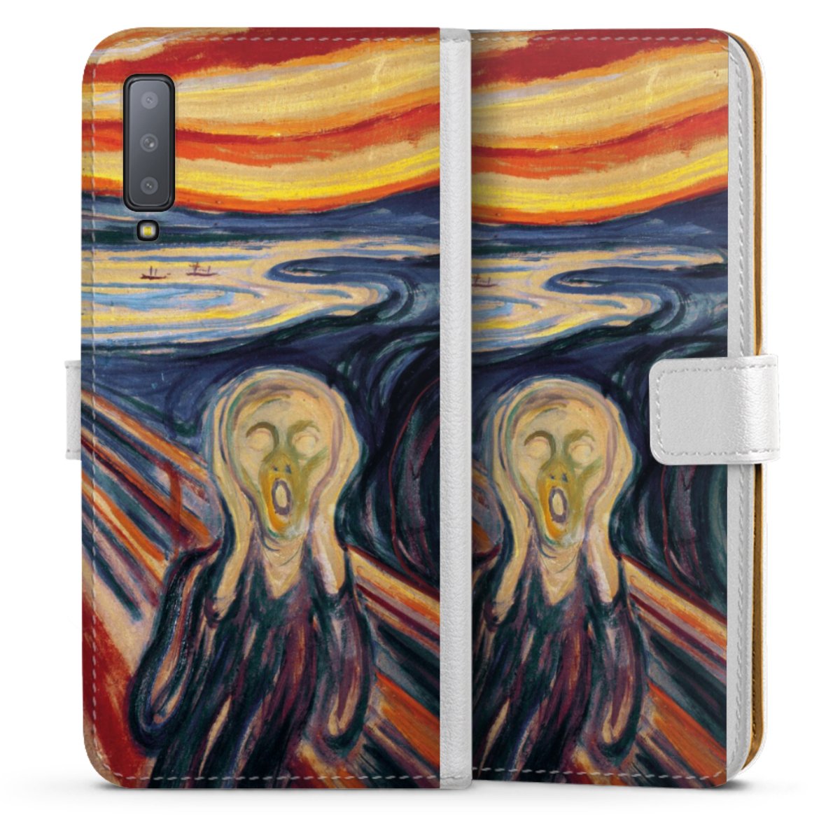 For our Sideflip Case we are using our advanced direct printing technology. The back and frontside are fully printabale, the inside of the phone bag is left unprinted. You can order the phone case without print, printed completely or also with a partial print.