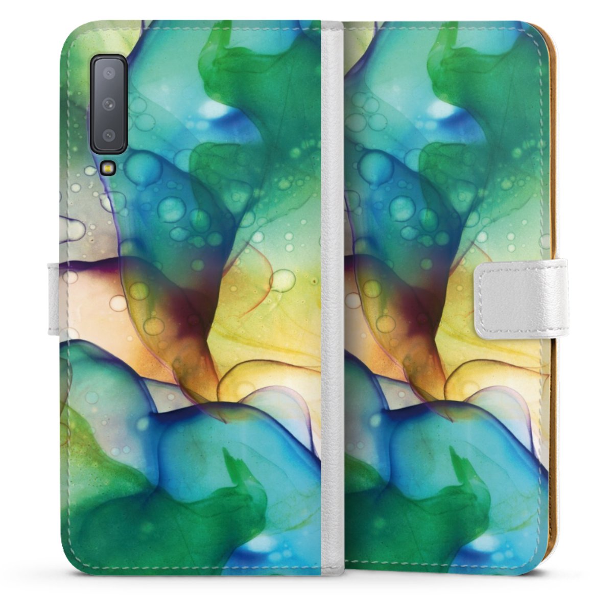 For our Sideflip Case we are using our advanced direct printing technology. The back and frontside are fully printabale, the inside of the phone bag is left unprinted. You can order the phone case without print, printed completely or also with a partial print.