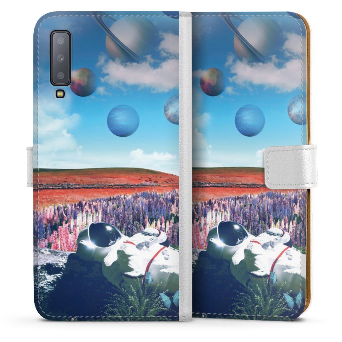For our Sideflip Case we are using our advanced direct printing technology. The back and frontside are fully printabale, the inside of the phone bag is left unprinted. You can order the phone case without print, printed completely or also with a partial print.
