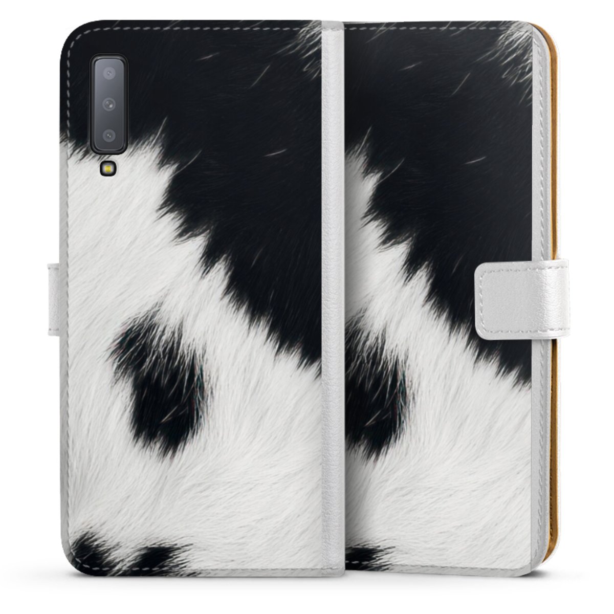 For our Sideflip Case we are using our advanced direct printing technology. The back and frontside are fully printabale, the inside of the phone bag is left unprinted. You can order the phone case without print, printed completely or also with a partial print.