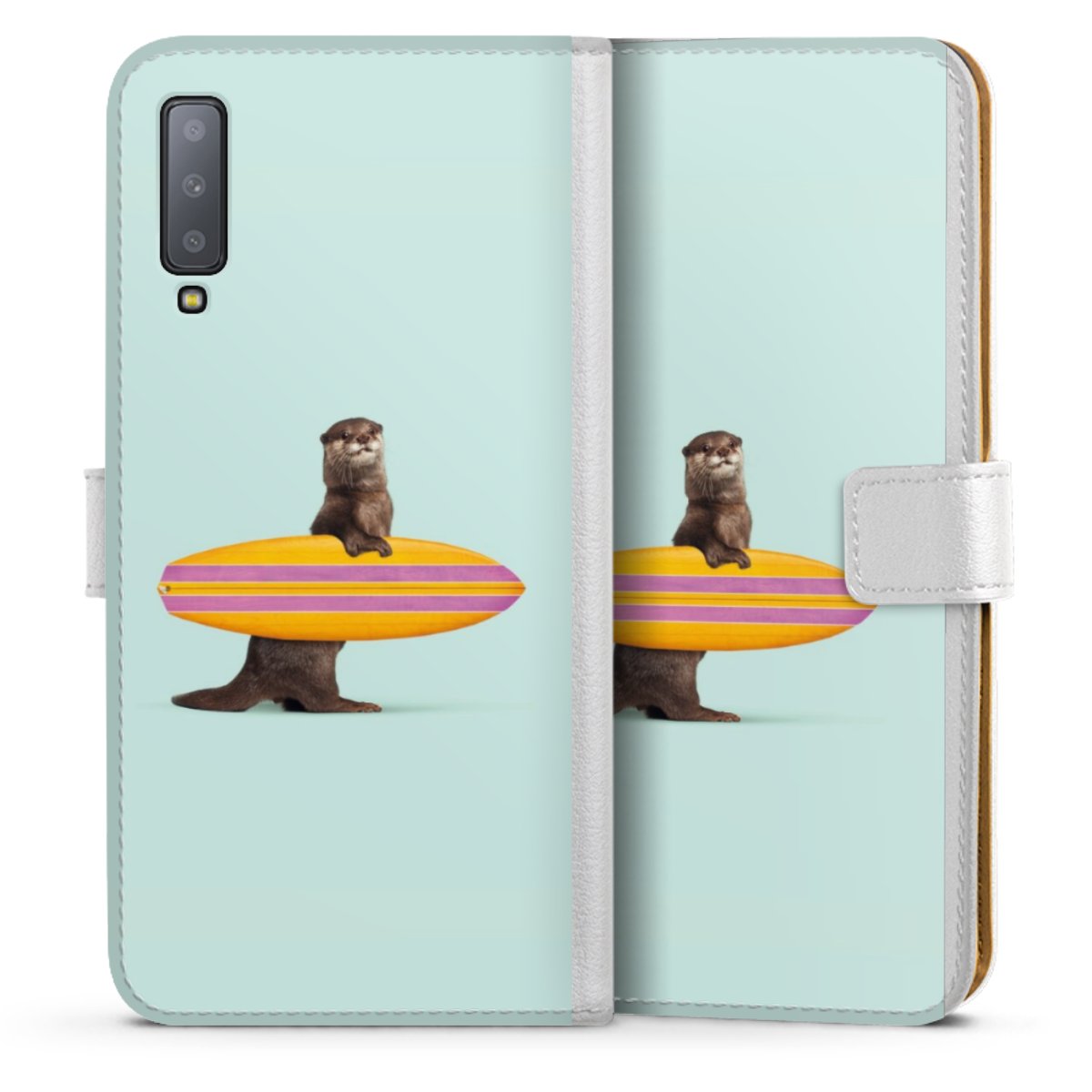 For our Sideflip Case we are using our advanced direct printing technology. The back and frontside are fully printabale, the inside of the phone bag is left unprinted. You can order the phone case without print, printed completely or also with a partial print.