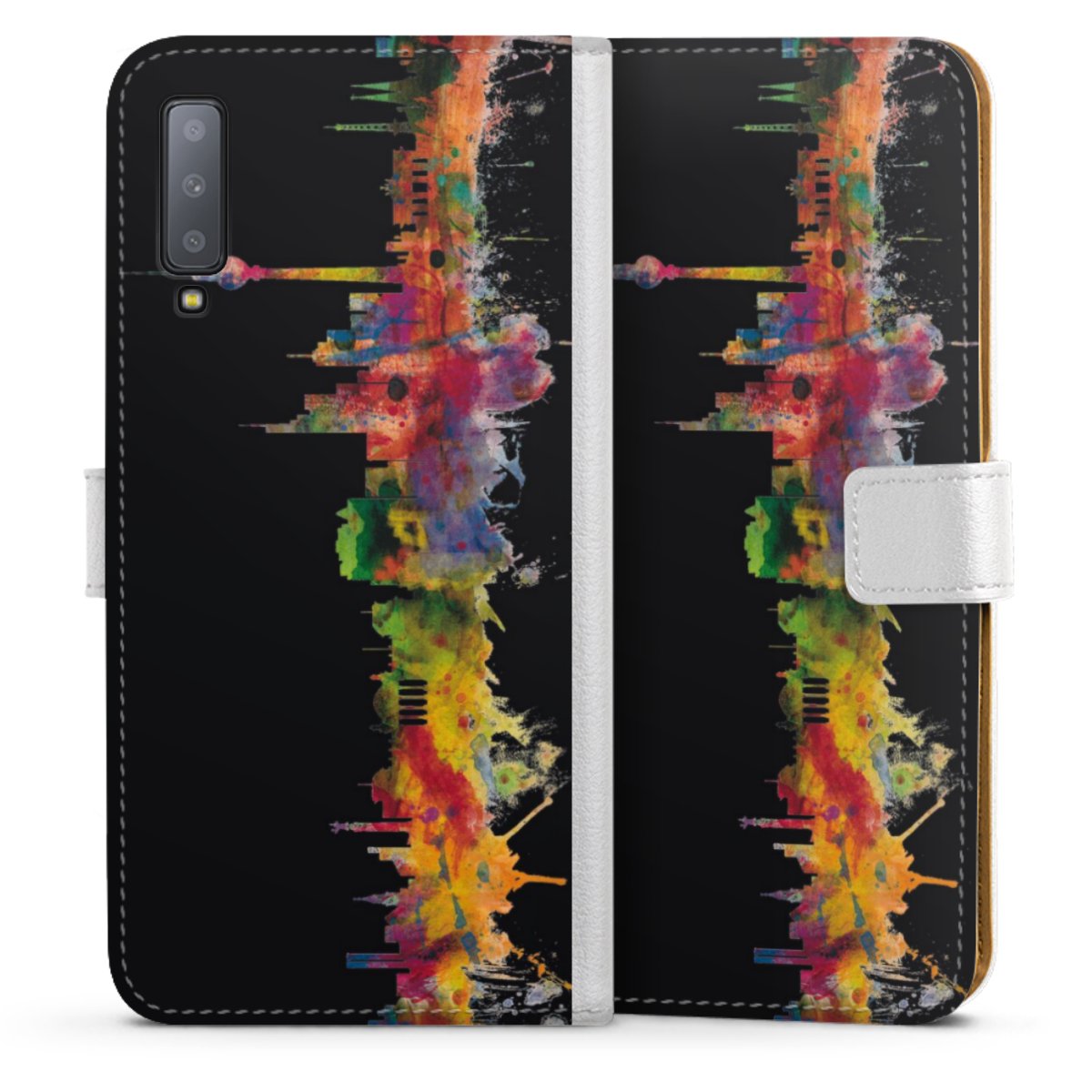 For our Sideflip Case we are using our advanced direct printing technology. The back and frontside are fully printabale, the inside of the phone bag is left unprinted. You can order the phone case without print, printed completely or also with a partial print.