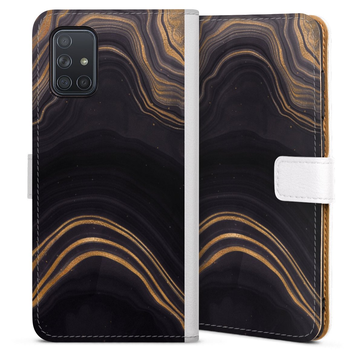 For our Sideflip Case we are using our advanced direct printing technology. The back and frontside are fully printabale, the inside of the phone bag is left unprinted. You can order the phone case without print, printed completely or also with a partial print.