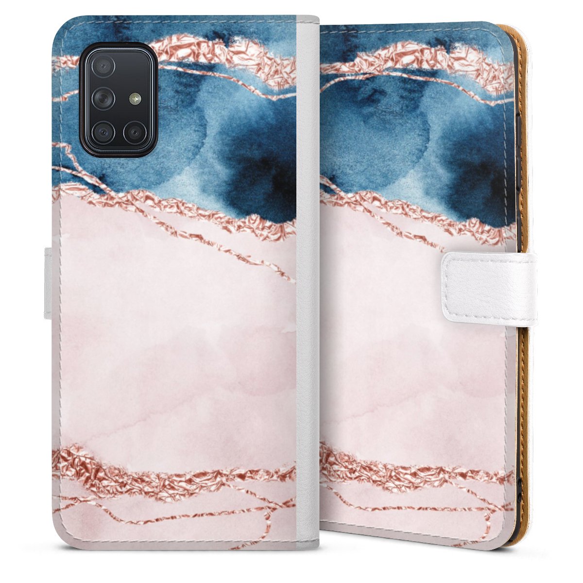 For our Sideflip Case we are using our advanced direct printing technology. The back and frontside are fully printabale, the inside of the phone bag is left unprinted. You can order the phone case without print, printed completely or also with a partial print.