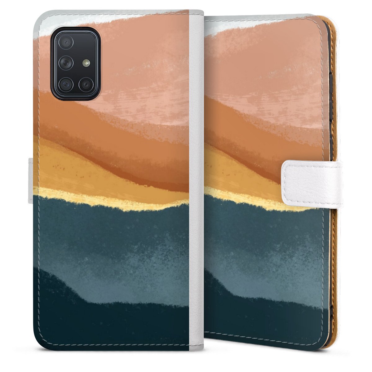 For our Sideflip Case we are using our advanced direct printing technology. The back and frontside are fully printabale, the inside of the phone bag is left unprinted. You can order the phone case without print, printed completely or also with a partial print.